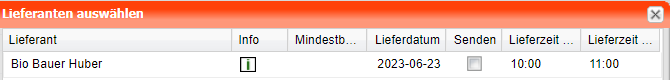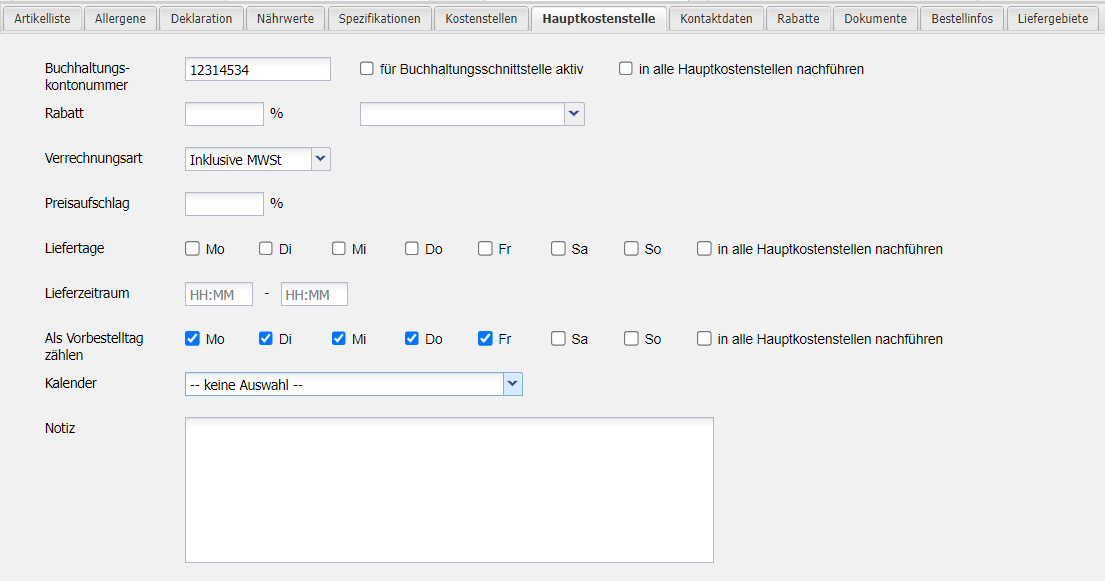 | Liefertage | Wenn kein Schalter gesetzt ist, dann kann für alle Liefertage bestellt werden. Ansonsten kann nur für jene Tage bestellt werden, die einen Schalter gesetzt haben. |