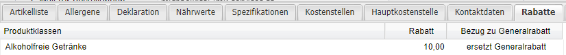 | Produktklassen | An dieser Stelle können zusätzlich noch Rabatte je Produktklasse hinterlegt werden. Die Produktklassen beziehen sich immer auf die verknüpften Einkaufsprodukte des Lieferantenartikels. |