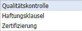 Produktklauseln können in vorgegebenen Typgruppen definiert werden und dienen dazu, bei Lieferprodukten für die Produktion und für den Konsumenten relevante Klauseln zu hinterlegen. Die möglichen Typen sind Qualitätskontrolle, Haftungsklausel und Zertifizierung.
