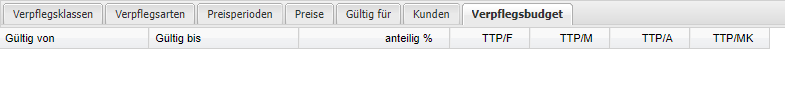 Budget je Verpflegsklasse Als Basis für die gesamte Berechnung des WES BKT sowie der Anzahl der BKT, dient das innerhalb der Menüplanklasse hinterlegte Verpflegsbudget je Verpflegsklasse.