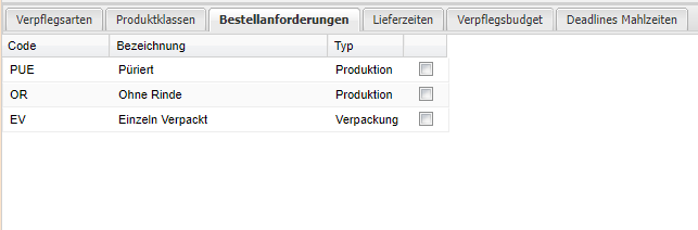 Bestellanforderungen können über mynecta bei jeder Verpflegsart hinzugefügt werden. An dieser Stelle wählt man die gewünschten Anforderungen für das Menüplanprofil aus.