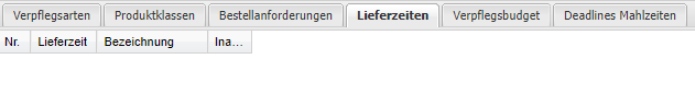 An dieser Stelle können für das Menüplanprofil Lieferzeiten (Schichten) definiert werden. Diese werden bei der externen Bestellung in mynecta zur Auswahl angezeigt. Sind aktive Lieferzeiten definiert, dann muss pro Bestelltag vom Besteller eine Lieferzeit ausgewählt werden. Diese wird in Folge in den Auftrag durchgeschleift.