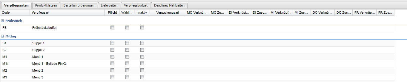 | Verpflegsart | Anzeige der Verpflegsarten |