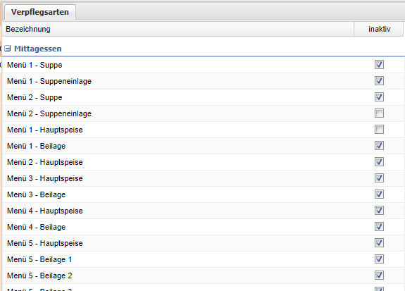 inaktiv Durch Setzen des Schalters werden die Verpflegsarten für die Bestellung deaktiviert.