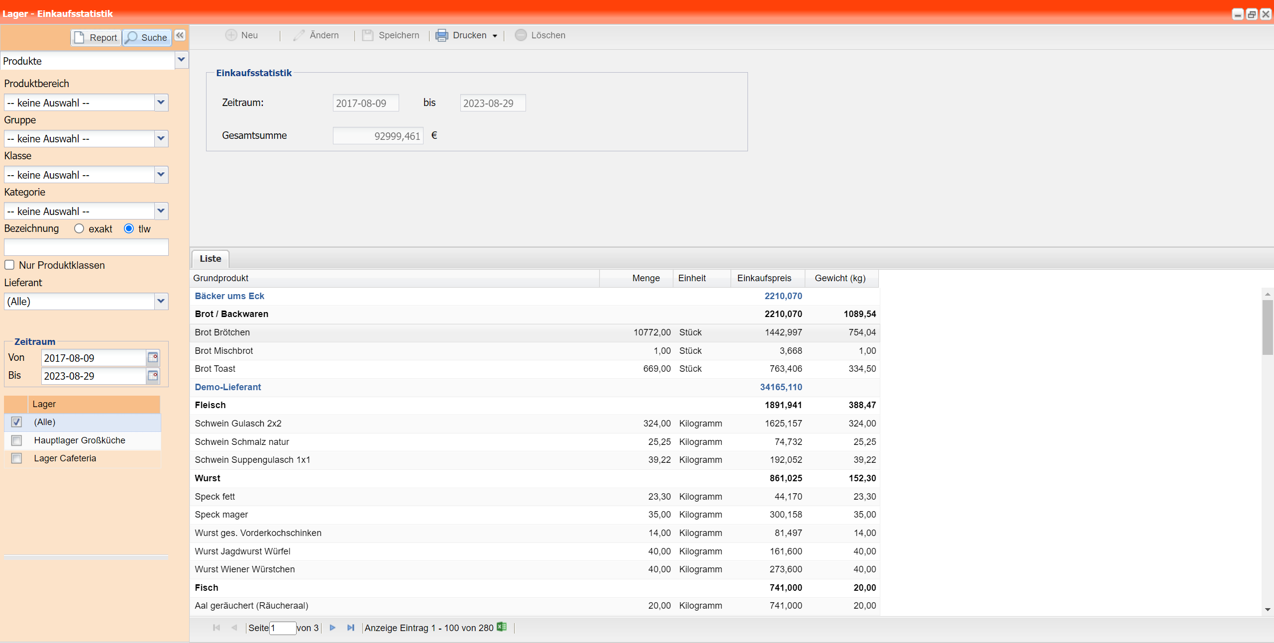 Sie finden die Einkaufsstatistik im Modul "Lager", unter dem Menüpunkt "Einkaufsstatistik":