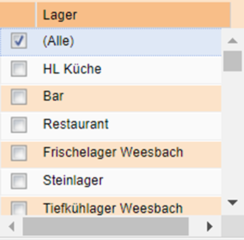 Hier können ein oder mehrere Lager ausgewählt werden. Die Auswahl des Lagers bezieht sich auf das Lager, welches im Lieferschein hinterlegt wurde.