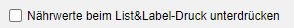 Ist der Schalter gesetzt, werden, trotz der im Formular vorgesehenem Parameter für Nährwert, diese beim Druck unterdrückt.