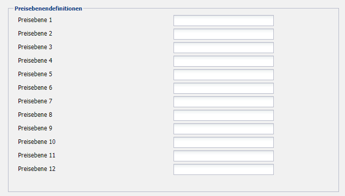 Hinterlegen einer frei wählbaren Bezeichnung der Preisebenen.