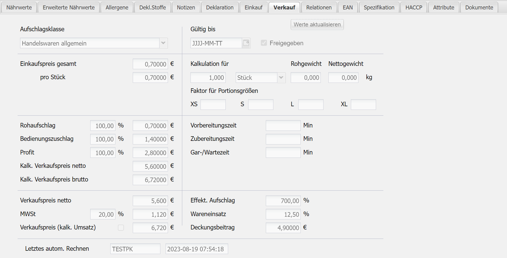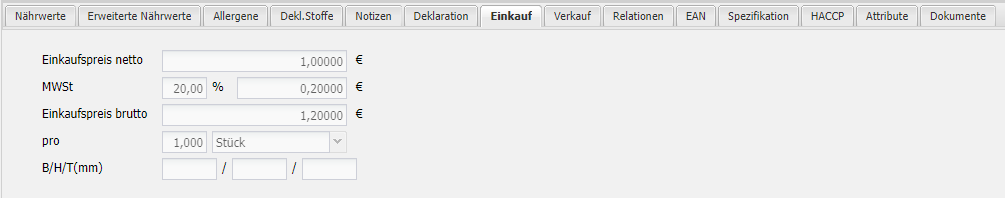 • Der Reiter "Kalkulation" nennt sich bei Handelswaren "Einkauf"