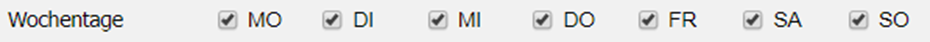 Hier wählt man die Wochentage aus, die für den Kunden im Wochenmenüplan ersichtlich sein sollen und für die dieser bestellen darf.
