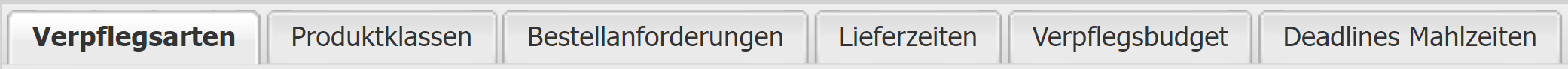 Hier kann man die Verpflegsarten festlegen, welche für den Kunden ersichtlich sein dürfen und welche dieser bestellen darf.