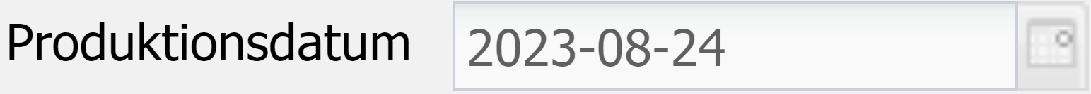 Hier wird das Datum ausgewählt an welchem die Produkte tatsächlich produziert werden, Das Datum hat auch Auswirkungen auf verschiedene Drucke. z.B. das Haltbarkeitsdatum auf Etiketten.