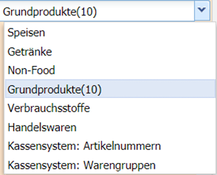 Auswahl eines Produktbereichs mittels Dropdown-Liste, in welchem Produktbereich die Speise bzw. das Getränk gespeichert werden soll. Produktbereiche kann man sich wie Ordner vorstellen in denen die Speisen und Getränke abgelegt werden. Auch hier gibt es wieder verschiedene Auswertungen und Statistiken, welche man je Produktbereich erstellen kann.