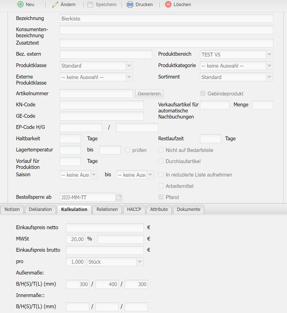 Bei Verbrauchssoffen können zusätzlich noch die Maße hinterlegt werden. Dies hat rein einen informativen Charakter und wird nicht weiter in necta verwendet.